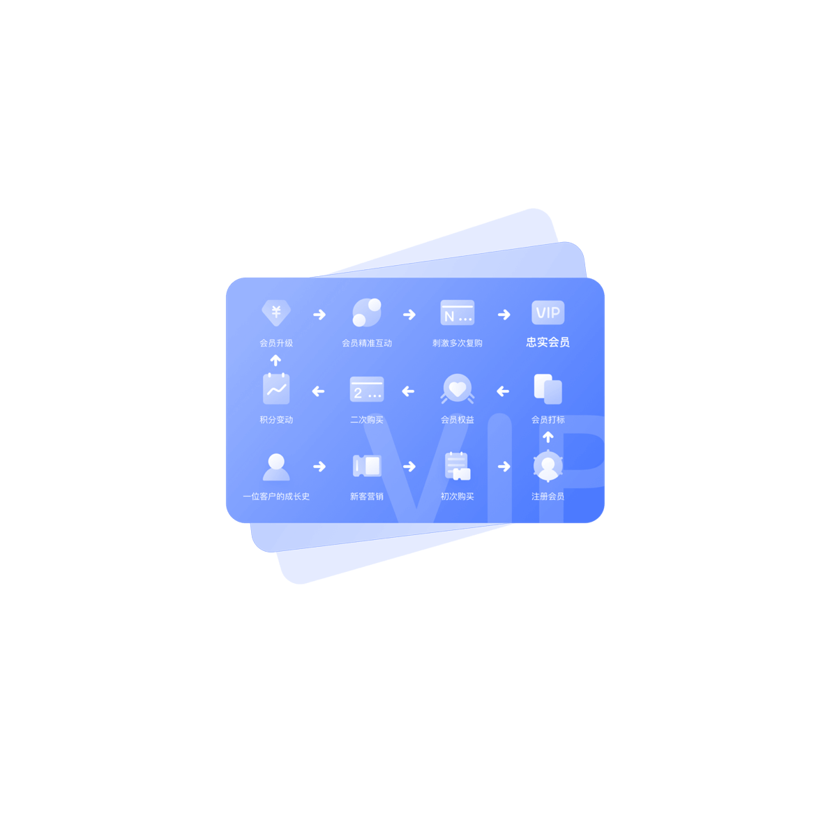 二次購買—>會員升級—>精準(zhǔn)營銷—>實(shí)現(xiàn)復(fù)購—>忠實(shí)會員